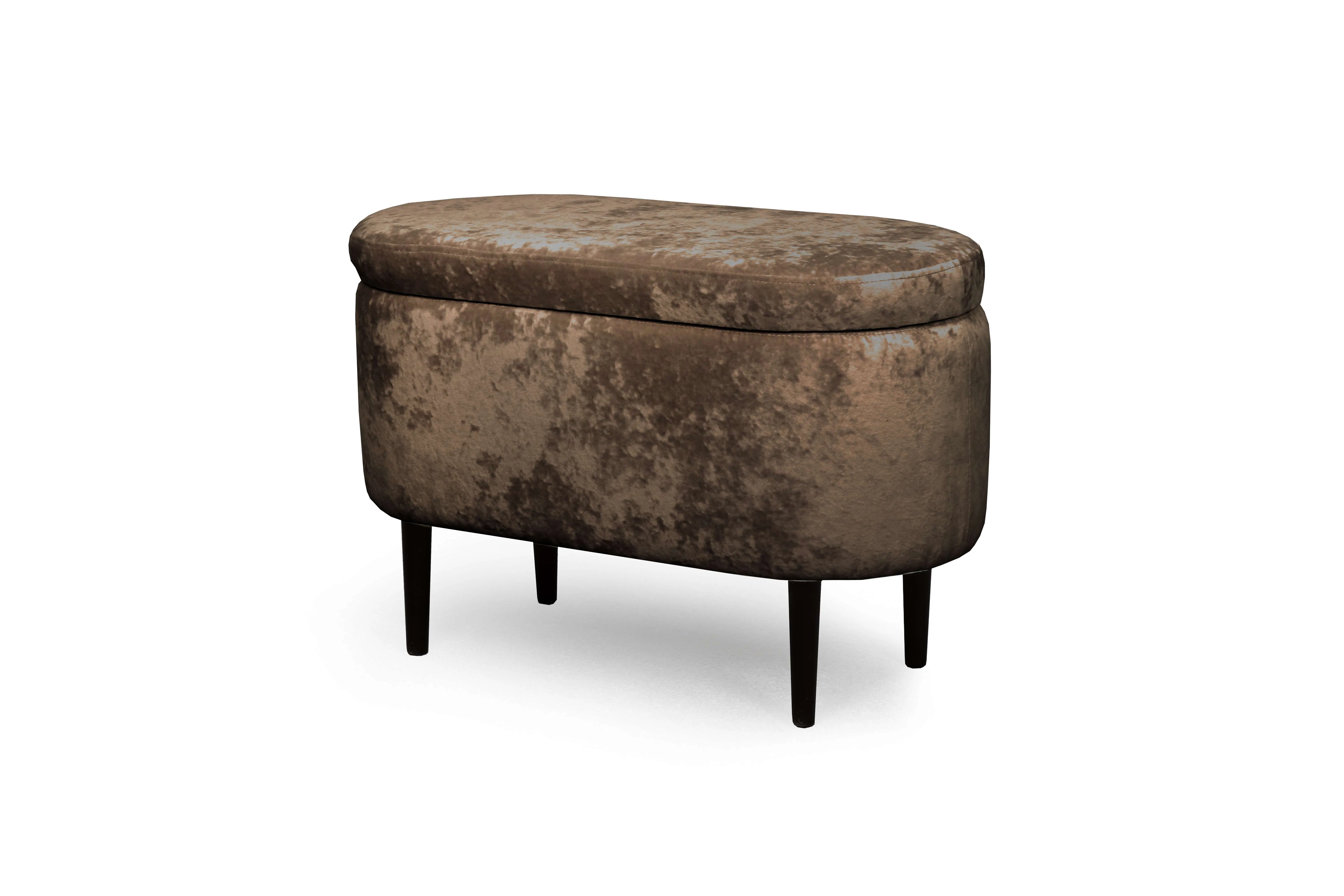 Мягкая обивка в ткани велюр с краш-эффектом добавляет приятный объем и украшает изделие. Опоры выполнены из массива берёзы и имеют защитные войлочные наклейки. Банкетка хороша не только в гостиной, но и в спальне, на кухне и в детской комнате. Максимальная нагрузка 100 кг.