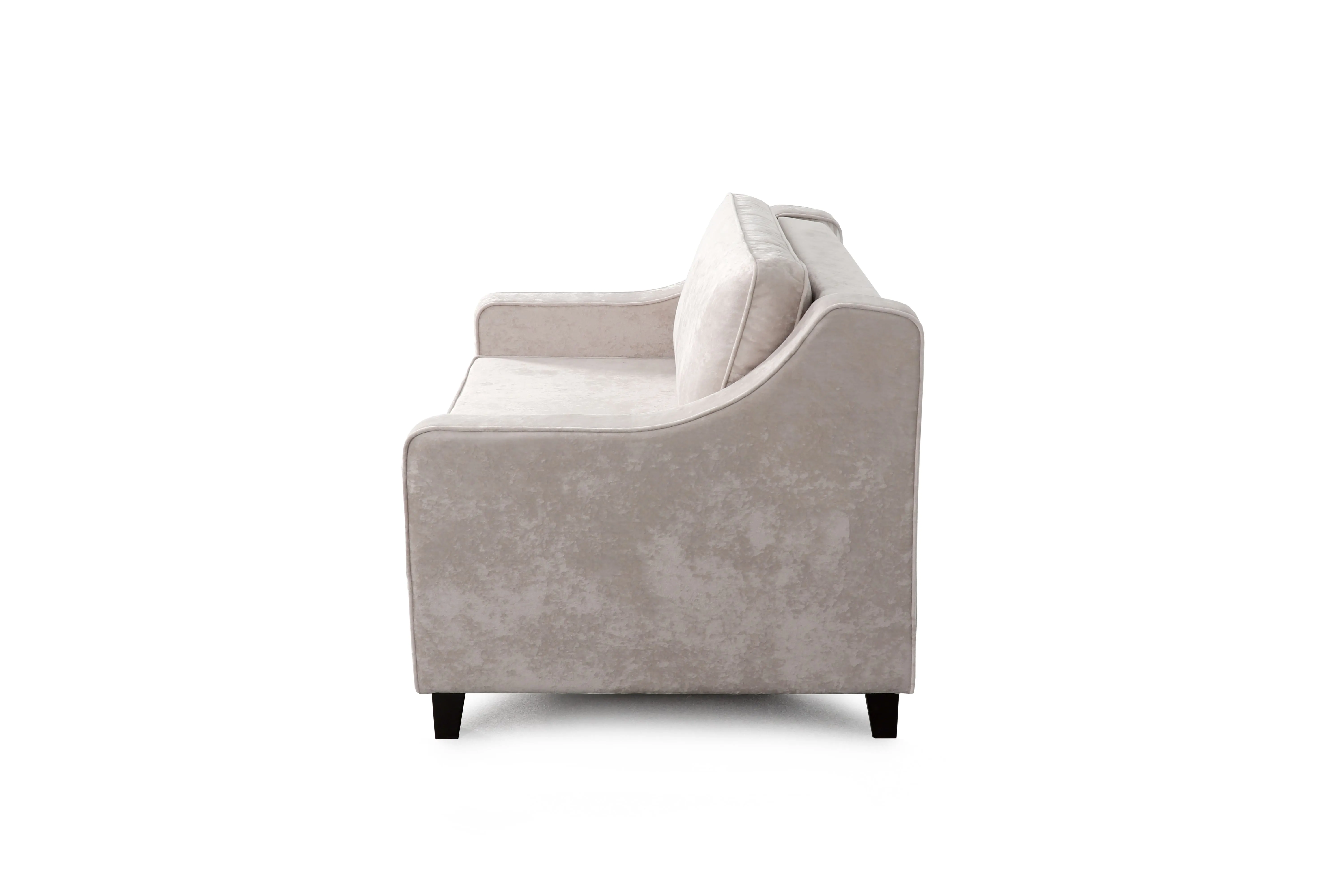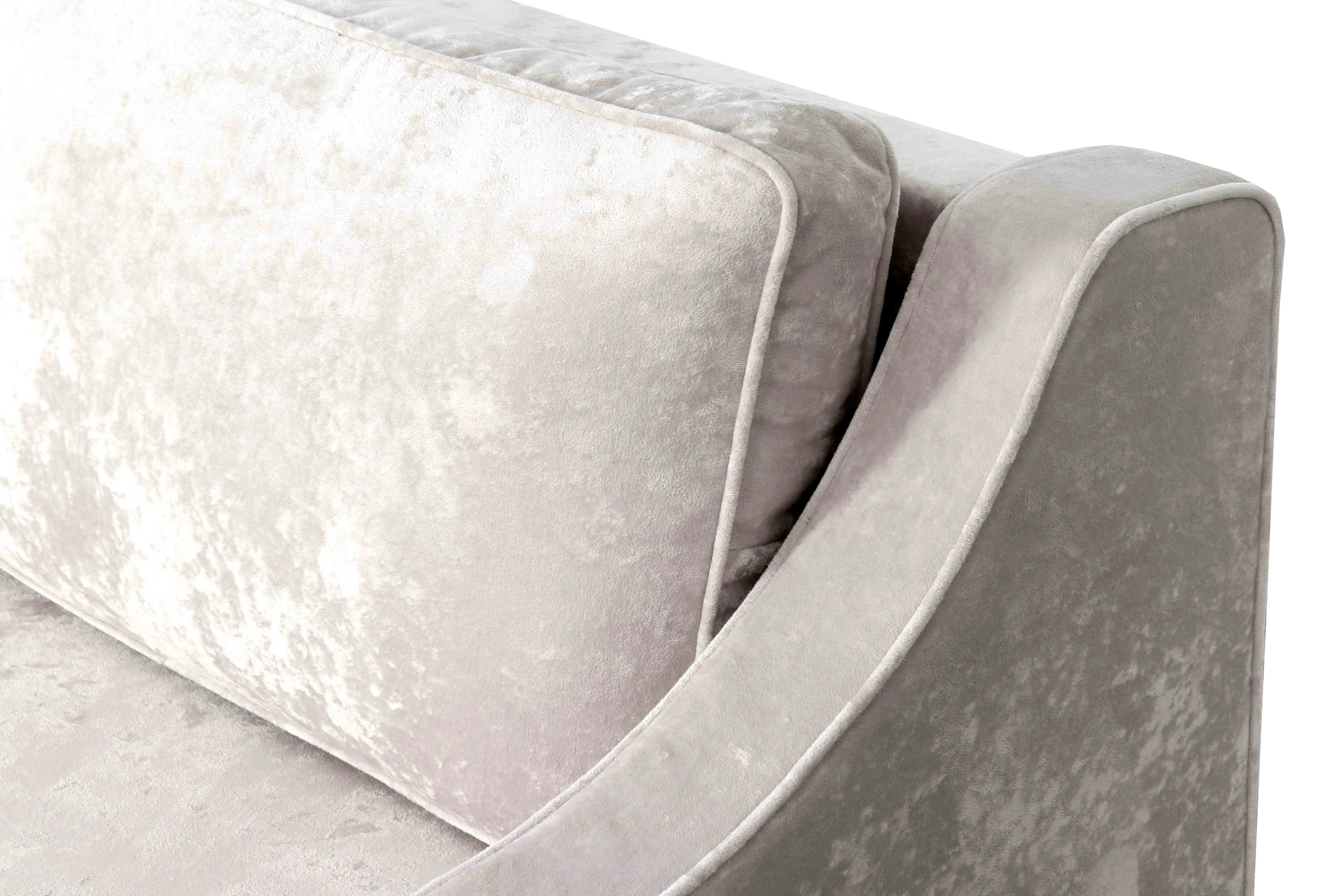 Независимый пружинный блок в основании дивана выступает в качестве полноценного ортопедического матраса. Невероятно мягкий и тактильно приятный велюр не только роскошно выглядит, но еще и практичен в эксплуатации, а также имеет отличные показатели износоустойчивости. Фигурная форма подлокотника создаст дополнительный комфорт и удобство.