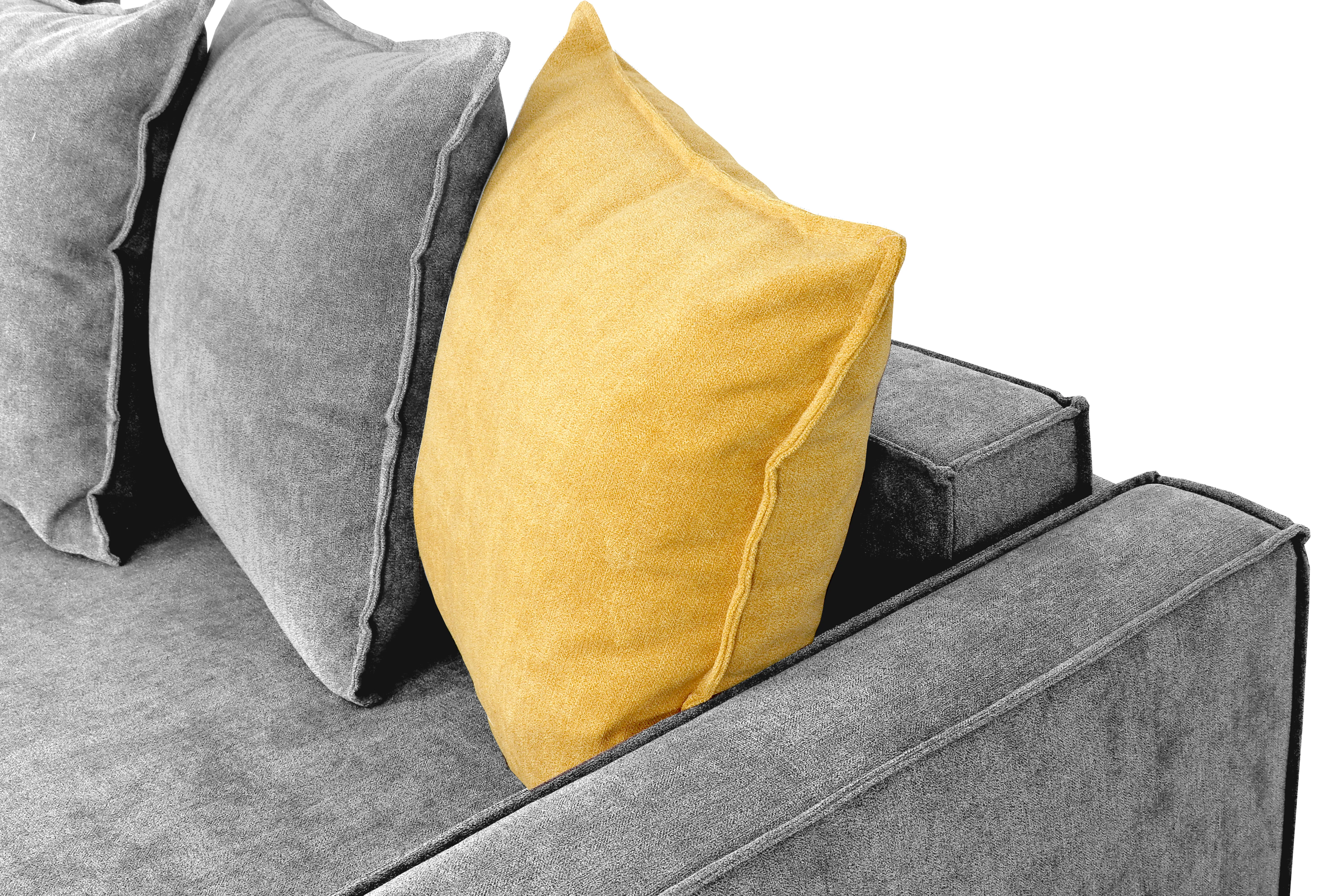 Велюровая ткань не только роскошно выглядит, но еще и практична в эксплуатации, а также имеет отличные показатели износоустойчивости. В комплект входят 5 подушек с современным наполнителем Сорель, что позволяет сохранить форму подушек максимально долго в любых условиях эксплуатации.