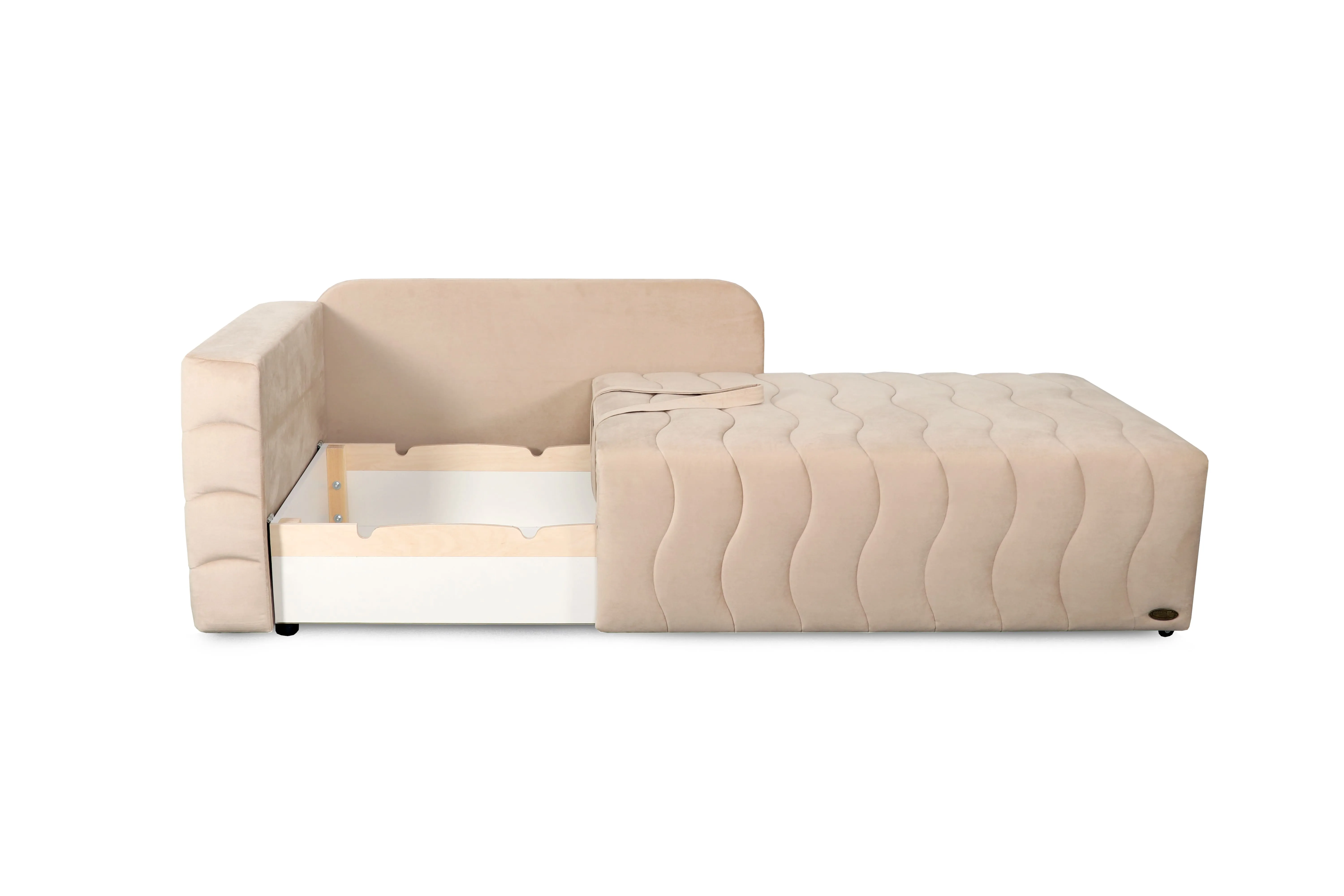 Диван при необходимости превращается в полноценную комфортную кровать, а вместительный бельевой ящик добавляет функциональности.