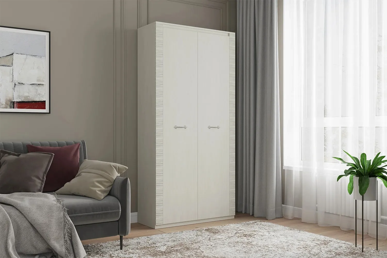 Отличительная черта серии "Элана" - вертикальные рифленые накладки на фасаде шкафа.