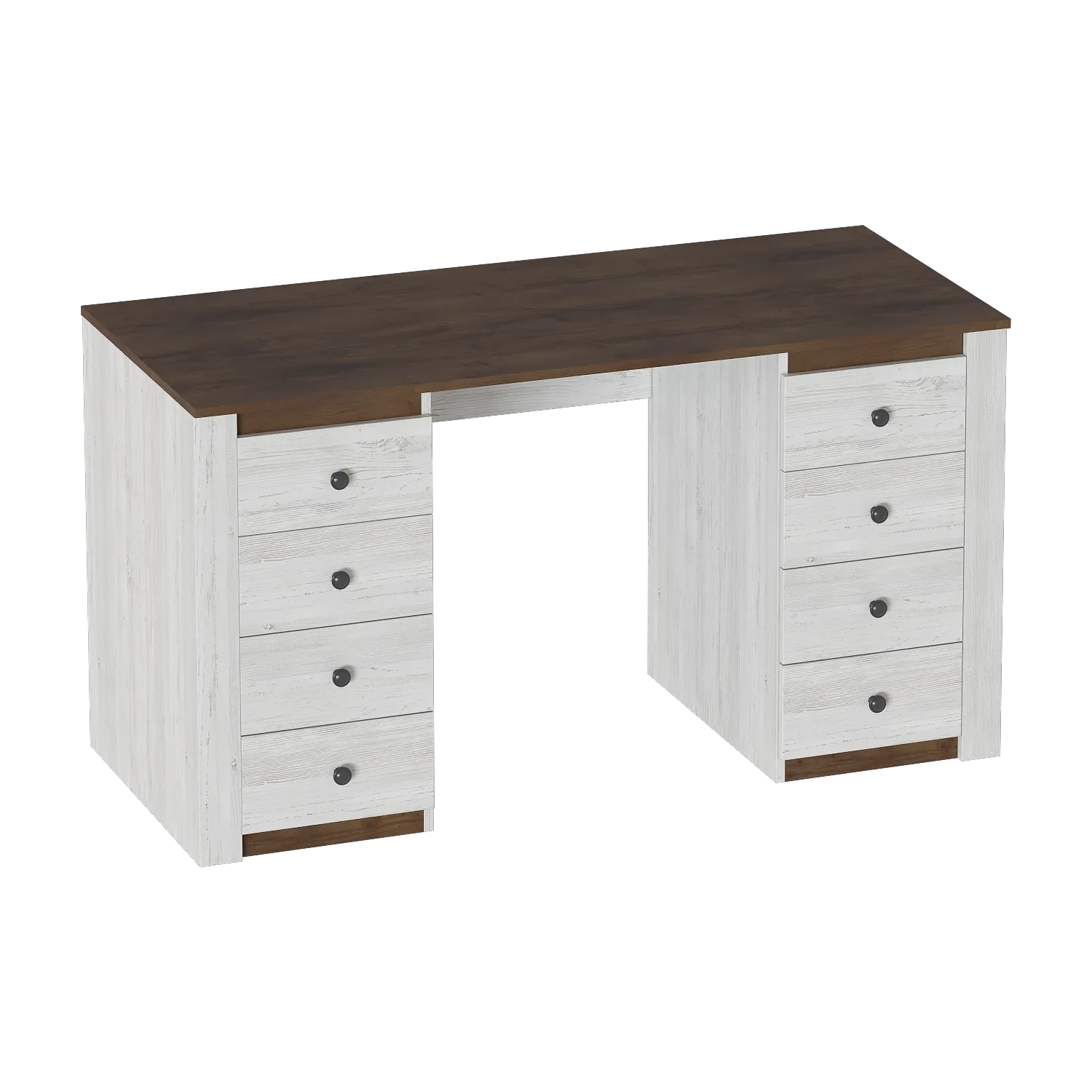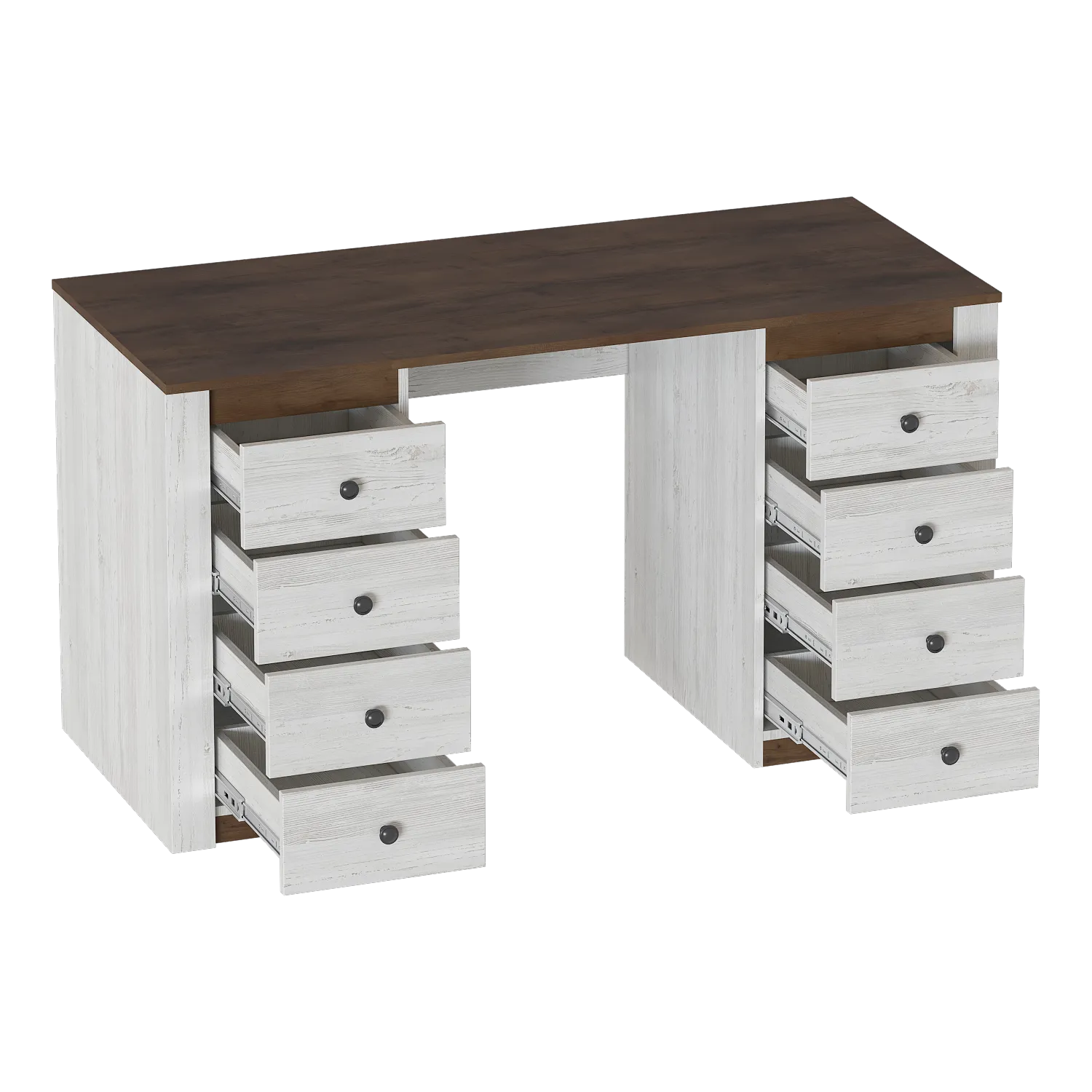 Стол изготовлен из качественных, безопасных материалов, что гарантирует его надежность и долговечность. В столе установлено восемь выдвижных ящиков, которые идеально подходят для хранения документов и канцелярских принадлежностей. Также на столе есть место для монитора компьютера и клавиатуры.