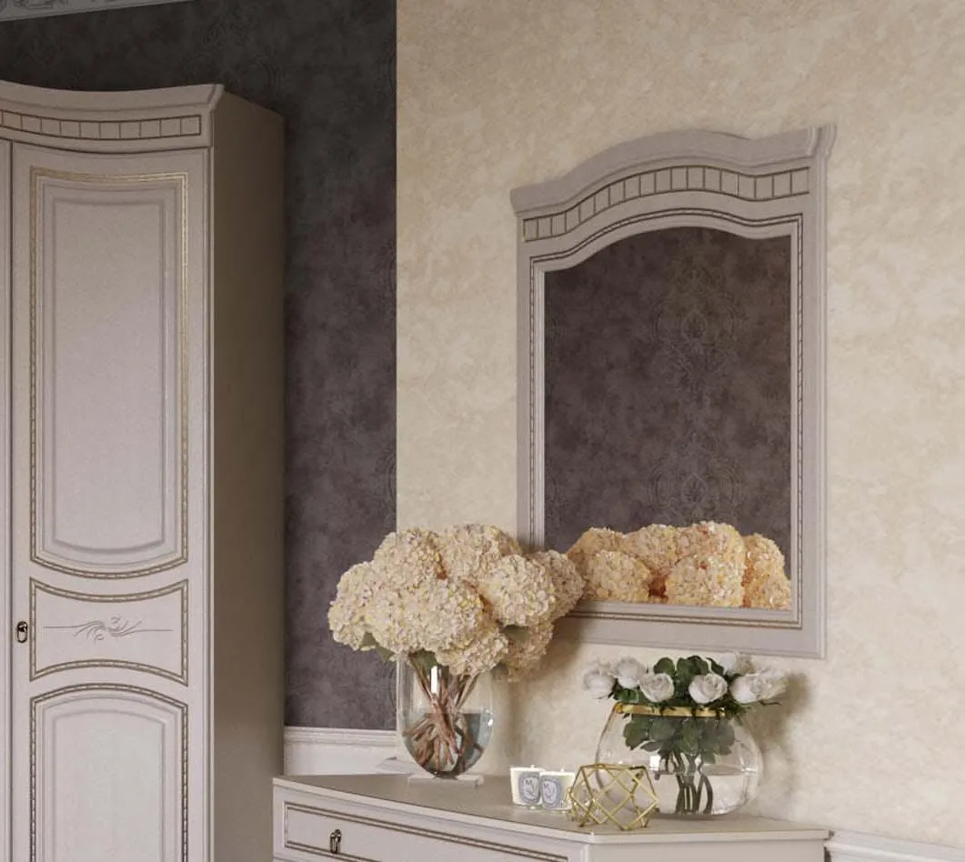 Рама декорирована элегантной фрезеровкой с эффектом патины, изготовлена из ЛДСП толщиной 16 мм и МДФ, что придает изделию прочность и долговечность.
